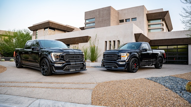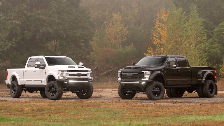 Shelby trucks were made to perform. They flat-out dominate the road, thanks to Shelby-engineered 775-horsepower supercharged engines. The Shelby by FOX suspension system allows you to absorb the impacts from the road and adjustable dual speed controls adapt to your needs while on the road. The unique front end design sports a Shelby front grille, while powered side steps light up and guard your truck's frame with rock guards. Inside, you'll enjoy extreme luxury with full two-tone leather seat re-covers and carbon fiber touches. The Shelby Ford pickup gets the most out of your drive.