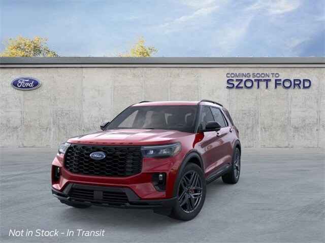 Recent Arrival! 4WD. 2026 Ford Explorer ST-Line 4WD 2.3L EcoBoost I-4 Rapid Red Metallic Tinted Clearcoat
