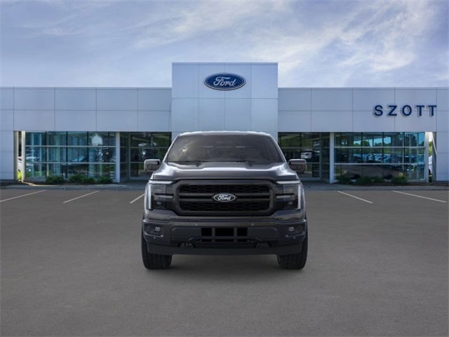 With some available options like Bed Utility Package (4 Pickup Box Tie-Down Plates, Bed Storage Boxes, LED Box Lighting, and Tailgate Step with Work Surface), Equipment Group 502A High (2nd Row Heated Seats, ActiveX Trimmed Bucket Seats, Ambient Lighting - Ice Blue Color Only, Head-Up Display, Illuminated Driver and Passenger Visors, Power-Adjustable Pedals with Memory, Power-Sliding Rear Window, Radio: B&O Unleashed Sound System by Bang & Olufsen, and Wheels: 20" Chrome-Like PVD), Ford Connectivity Package (1-Year Included), Internet access capable: 5G Modem - Ford Connectivity Package, Lariat Black Appearance Package (Black Exterior Badging, Black Grille, Black Taillamp Bezels, Body-Color Front and Rear Bumpers, Dark Interior Appliques, Gray Box Side Decal, and Matte Black Tailgate F-150 Decal), Mobile Office Package (Console Worksurface, Partitioned Lockable Rear Storage, and Wireless Charging), Tow/Haul Package (Integrated Trailer Brake Controller), 4WD, 4-Wheel Disc Brakes, 8 Speakers, ABS brakes, Air Conditioning, Alloy wheels, AM/FM radio: SiriusXM with 360L, Auto High-beam Headlights, Auto-dimming door mirrors, Auto-dimming Rear-View mirror, Automatic temperature control, Brake assist, Bumpers: chrome, Chrome wheels, Compass, Delay-off headlights, Driver door bin, Driver vanity mirror, Driver's Side SecuriCode Keyless-Entry Keypad, Dual front impact airbags, Dual front side impact airbags, Electronic Stability Control, Emergency communication system: SYNC 4 911 Assist, Front anti-roll bar, Front Bucket Seats, Front Center Armrest, Front dual zone A/C, Front fog lights, Front reading lights, Front wheel independent suspension, Fully automatic headlights, Garage door transmitter, Heated door mirrors, Heated front seats, Heated steering wheel, Illuminated entry, Low tire pressure warning, Memory seat, Navigation system: Connected Navigation, Occupant sensing airbag, Outside temperature display, Overhead airbag, Overhead console, Panic alarm, Passenger door bin, Passenger vanity mirror, Power door mirrors, Power driver seat, Power passenger seat, Power steering, Power windows, Radio data system, Radio: B&O Sound System by Bang and Olufsen, Rain sensing wipers, Rear reading lights, Rear seat center armrest, Rear step bumper, Rear window defroster, Remote keyless entry, Security system, Speed control, Split folding rear seat, Steering wheel mounted audio controls, SYNC 4 with Enhanced Voice Recognition, Tachometer, Telescoping steering wheel, Tilt steering wheel, Traction control, Trip computer, Turn signal indicator mirrors, Variably intermittent wipers, Ventilated front seats, and Wheels: 18" Chrome-Like PVD Prices may not included Dealer added accessories.